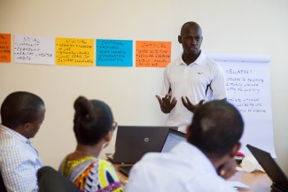 Sammy Ombisa branded with ISSUP logos preparing INEP facilitation at his grassroot office in Nairobi Kenya.