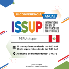 Participa en esta III Conferencia Anual organizada por ISSUP PERU en donde expertos, profesionales y especialistas en prevención y tratamiento del uso de sustancias se reunirán para compartir conocimientos, experiencias y las mejores prácticas.